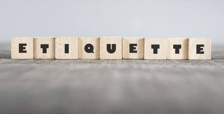 The rules of etiquette are set of unspoken rules that have been determined by society as a whole. Etiquette is made up of social norms that evolve with repeated behaviours that are accepted within a society.