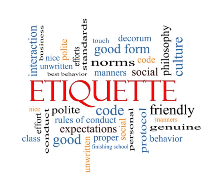 Etiquette, the complex network of rules that govern good behavior and our social and business interactions, is always evolving and changing as society changes. It reflects our cultural norms, generally accepted ethical codes, and the rules of various groups we belong to.