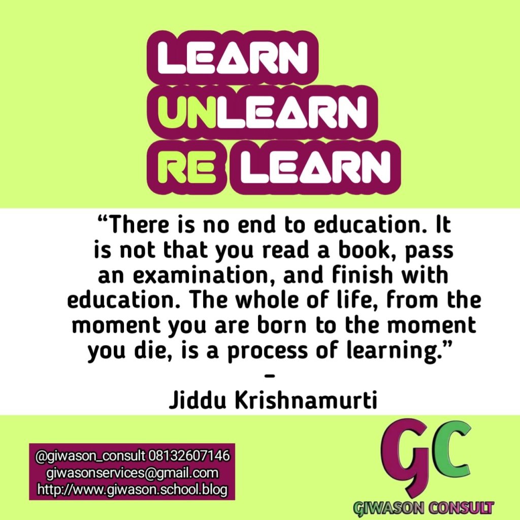 Don’t let your Ego push you away from Learning, Unlearning and Relearning. Don’t think you know it all, give room for upgrading of knowledge.