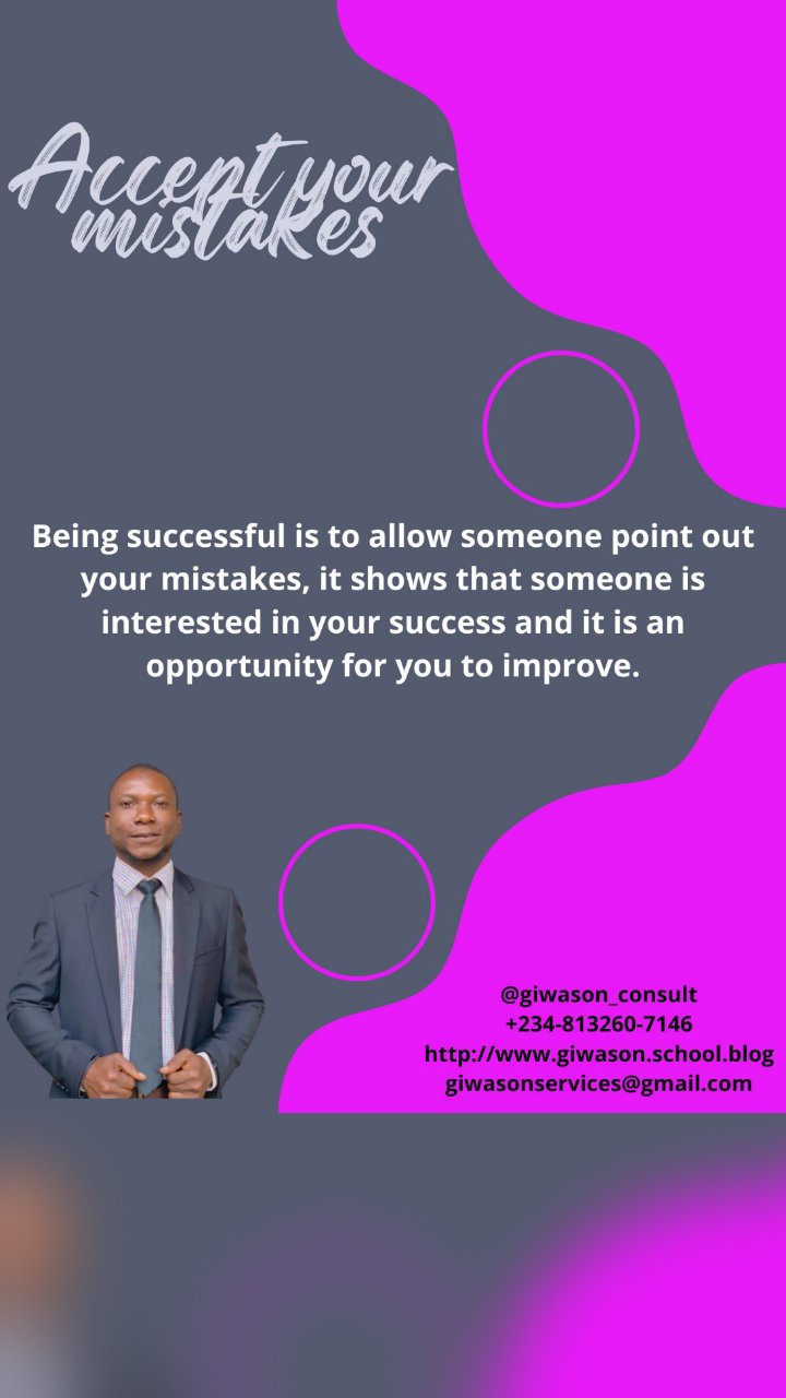Being successful is to allow someone point out your mistakes, it shows that someone is interested in your success and it is an opportunity for you to improve.